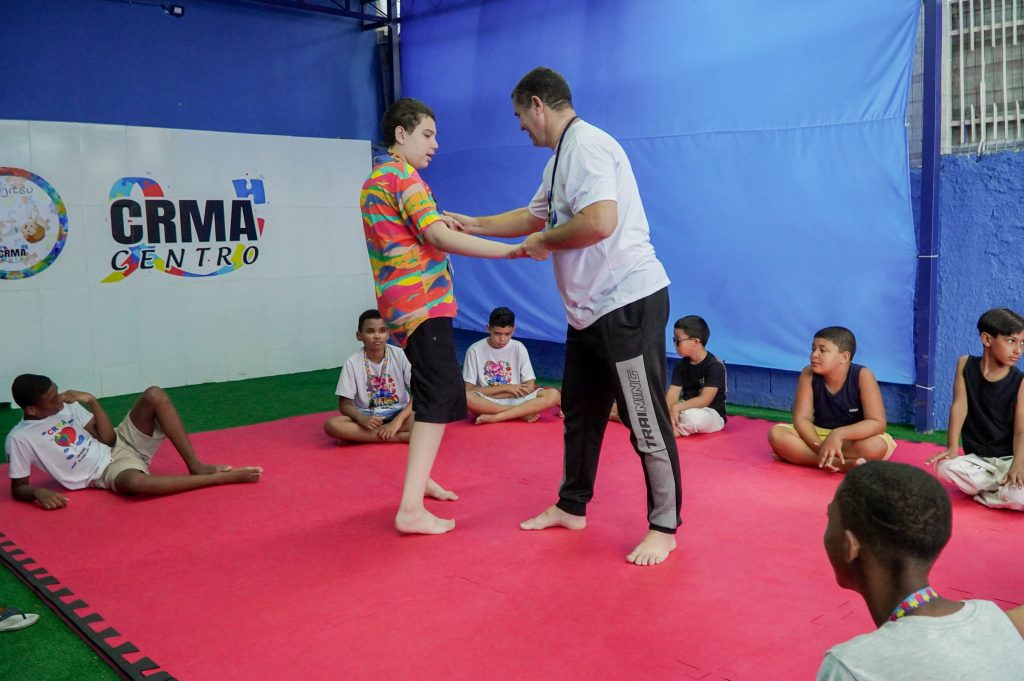 Há quatro anos, o CRMA faz parte da rotina da Danielle Ruiz, que leva o seu filho Miguel, de 11 anos, para as terapias oferecidas. Atualmente, ele pratica jiu-jítsu, faz psicomotricidade, psicologia e robótica na unidade. Para ela, existe acolhimento em cada canto da unidade.
