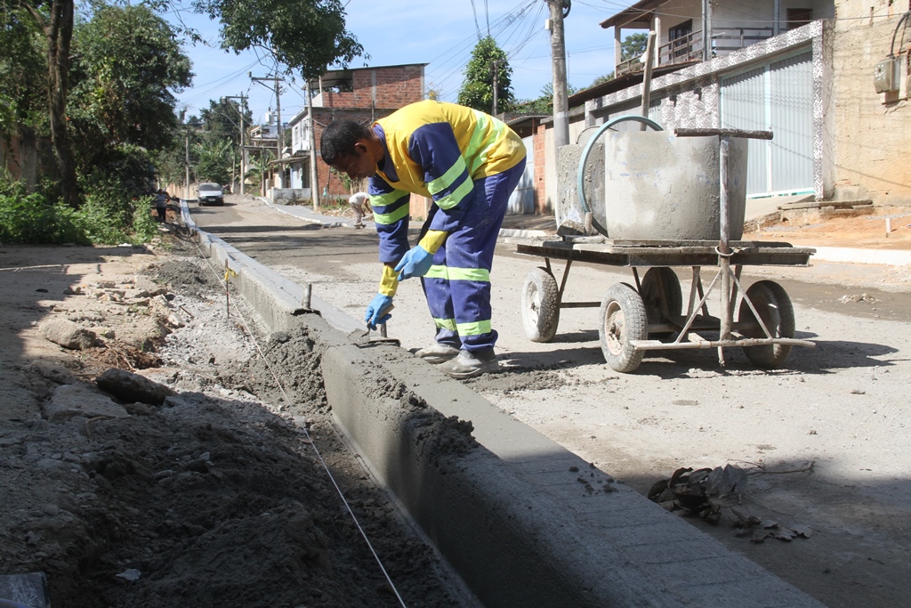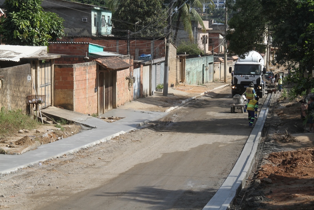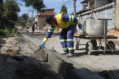 As obras de infraestrutura nos bairros Sacramento, Eliane e Iêda seguem avançando. As intervenções incluem drenagem, pavimentação, calçamento, sinalização e meio-fio em 126 ruas. Nesta quinta-feira (17), estão sendo construídas calçadas e meio-fios na Rua Heitor Lira, no Sacramento, e terraplanagem na Rua das Águias.