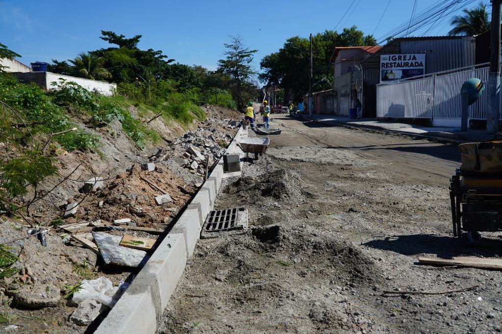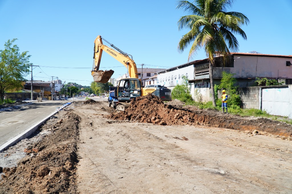 As obras do projeto Mobilidade Urbana Verde Integrada (MUVI) estão a todo vapor na Avenida Presidente Kennedy, na Trindade. Nesta segunda-feira (26), está sendo feito o rebaixamento do terreno onde será construída uma das pistas de rolamento do MUVI. O local faz parte do trecho 4 do projeto, que vai do bairro Estrela do Norte até a Trindade. No local, já foram feitos também procedimentos de drenagem e pavimentação.