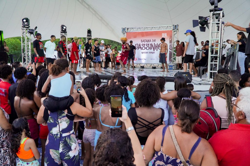 Durante toda a tarde, o Parque RJ Nosso Sonho recebeu centenas de pessoas, que aproveitaram todo o espaço de recreação e esporte e curtiram também os brinquedos infláveis da Caravana de Arte e Lazer, as brincadeiras, apresentações e, claro, a Batalha do Passinho.
