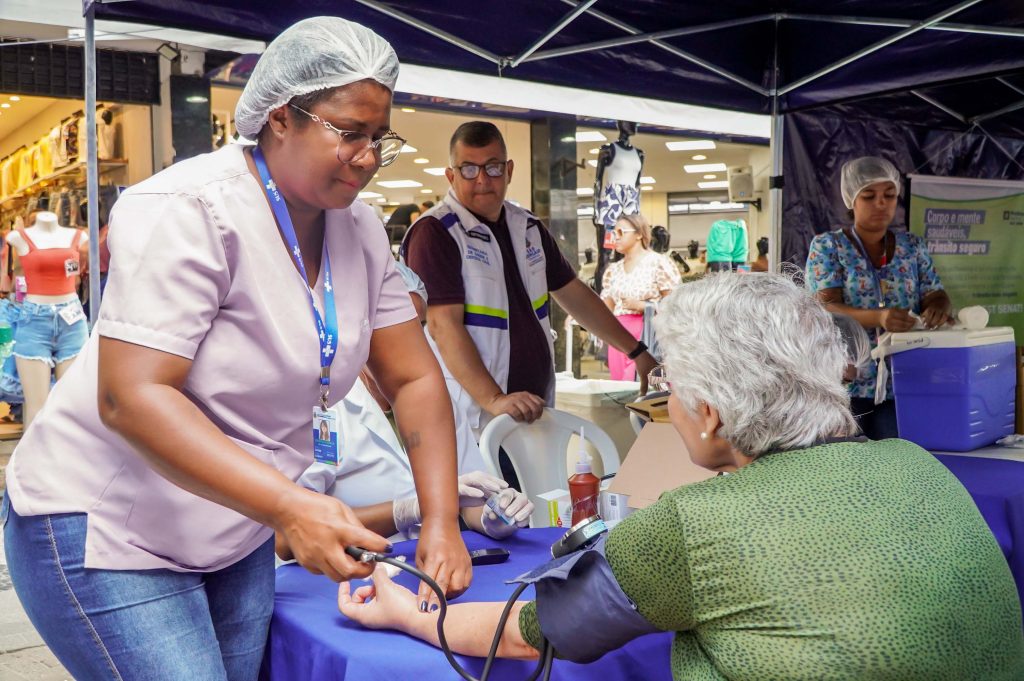 Cuidado com a saúde e com as pessoas no trânsito. É a partir da união das duas ideias que surgiu a ação educativa realizada no Alcântara, nesta manhã de quinta-feira (16), pelos servidores do Departamento de Educação para o Trânsito da Secretaria de Meio Ambiente e Transportes, em parceria com o Sest Senat. No evento, foram oferecidos vários serviços gratuitos, incluindo vacinação.