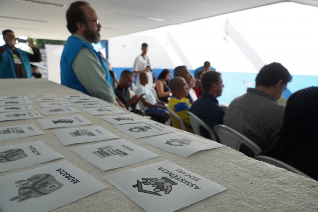 “Hoje, delimitamos com a população a macroárea e entendemos com os moradores quais equipamentos públicos existem aqui e quais eles têm que buscar fora do Jardim Catarina, para que a gente estude a necessidade e veja se existem espaços livres dentro do bairro onde esses equipamentos possam ser implementados. Estamos aqui para ouvir a população”, disse o coordenador técnico do Posto Territorial Nova Ipuca, Cláudio Crispim.
